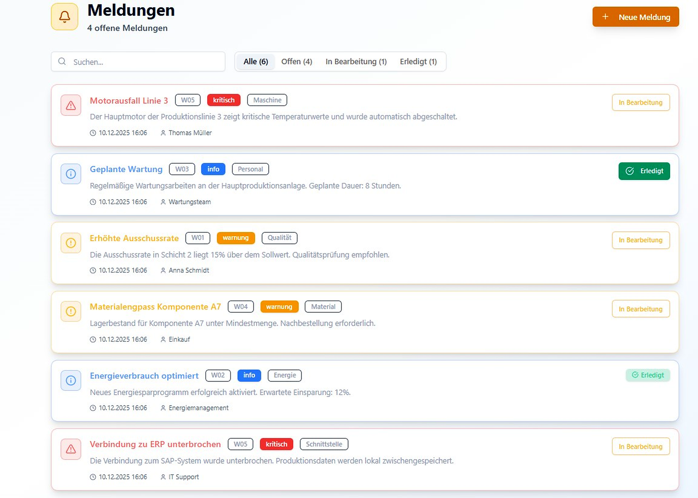 • Freigaben, Meldungen und strukturierte Stillstandsanalysen