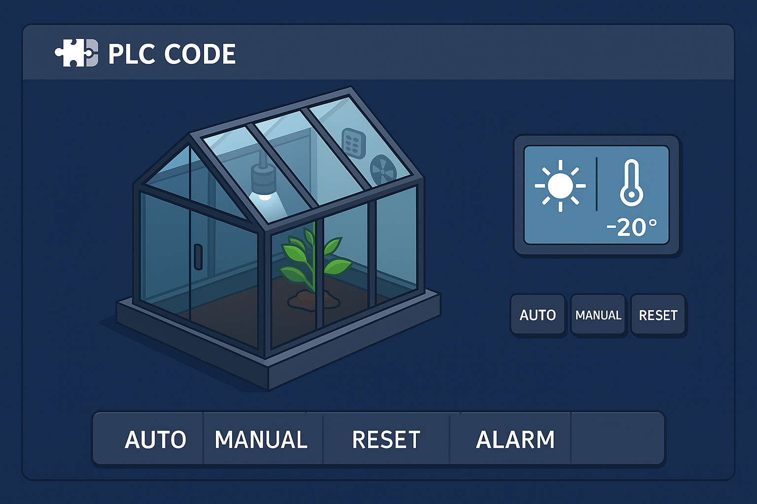 This function block automatically controls ventilation, irrigation, and lighting in greenhouses – based on sensor values, time frames, and manual inputs. The code is written entirely in Structured Control Language (SCL) and is ready for use directly in the Siemens TIA Portal. Ideal for professional systems, smart hobby projects, or training purposes.